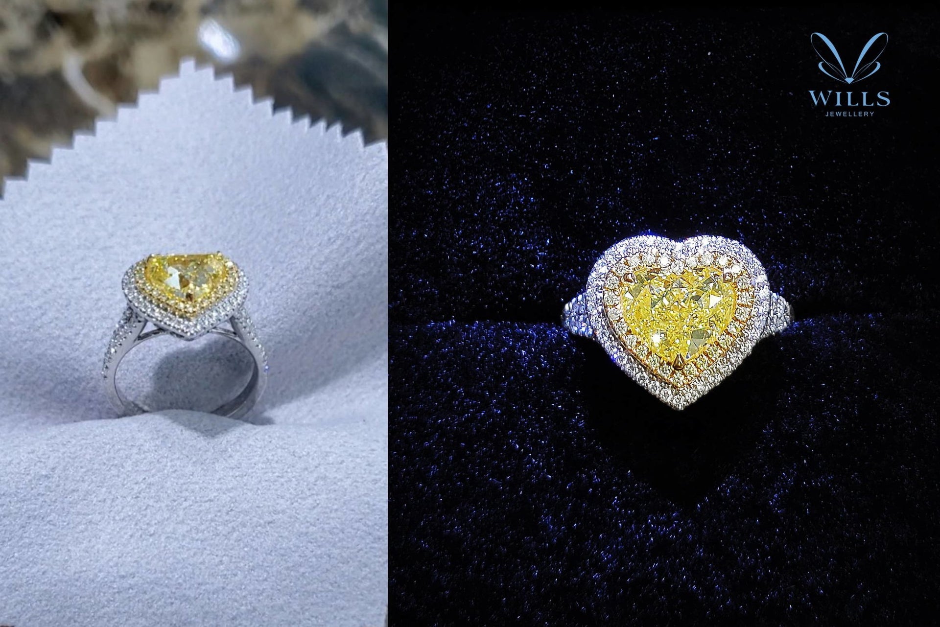 客人曾經目睹一顆耀目的心形黃鑽,從此便迷上了黃鑽,無奈坊間黃鑽價格高居不下,便只限於心動。多年後,也許是夢的推動,也許是對美的執著,終於再也不能只滿足於對黃鑽的遙遙相望。但經多番對比,也沒找到心儀的珠寶店,卻在朋友的介紹下,選擇了我們WILLS JEWELLERY來定制那顆該死的不能忘記的黃鑽。