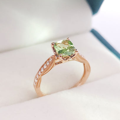 總而言之,薄荷色石榴石 · 古典戒指以其獨特色澤展現了不一樣的優雅。結合古典風的設計,帶來一種新鮮感。