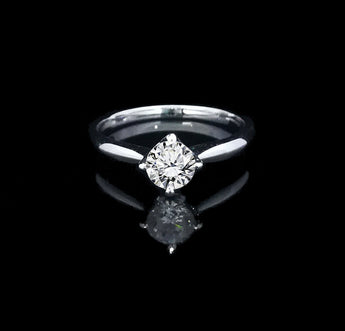 此款經典求婚戒指以皇冠設計爪鑲鑽石為特色。