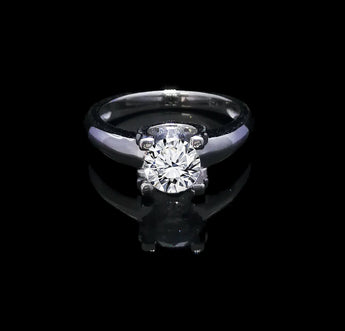 此款經典求婚戒指以獨特的弧形鏡底四爪鑲石為特色。
