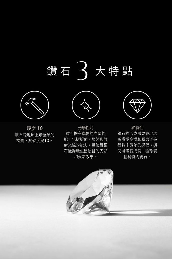 鑽石亦被公認為世上最珍貴的寶石。每一顆鑽石均需在極高溫和高壓的地底深處,經歷億萬年才能形成。此外,鑽石是最堅硬天然物質,它的硬度達到摩氏硬度中最高的第十級,因此被冠以永恆不朽的標誌。