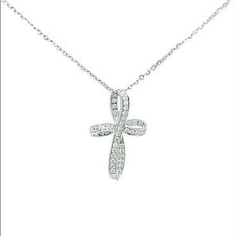 以扭身的絲帶作為設計藍圖,工匠在絲帶樣的白金上鑲滿了小鑽石的十字架上,
