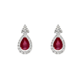 WILLS選購優質天然紅寶石作為耳環的主石。梨形的紅寶石綻放著鮮豔奪目的棗紅色彩,飽和度極高而又晶瑩剔透。寶石外圍鑲了一圈閃亮的微密釘鑽石光環,然後在上方鑲上由三顆小白鑽組成的小三角形。整對耳環的設計簡潔大方卻又十分精緻,小巧玲瓏卻又十分亮眼,最適合精巧秀麗的您每天佩戴。