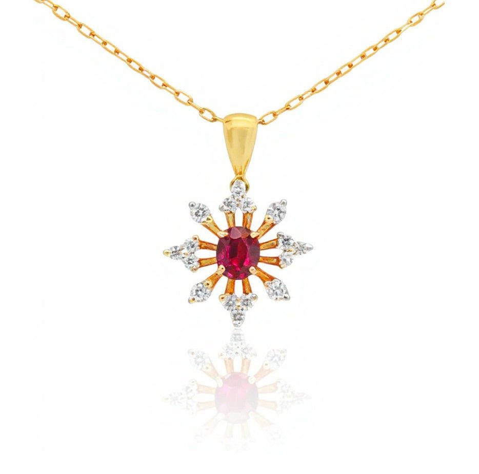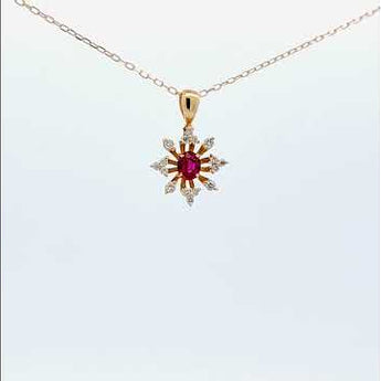 設計師採用紅寶石作為18K金頸鏈的主石,紅寶石透出艷麗的光澤,形態就仿似綻放的花漾,一舉一動都閃閃生光。
