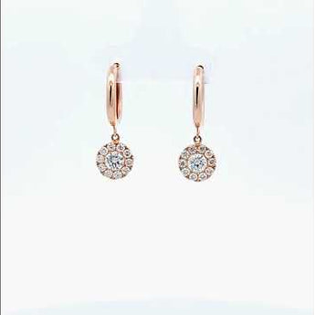 The design of the dangling earrings is exquisite and delicate, with the main stone surrounded by multiple sparkling micro-pavé diamonds, adding an undeniable touch of elegance to your beautifully contoured earlobes.
