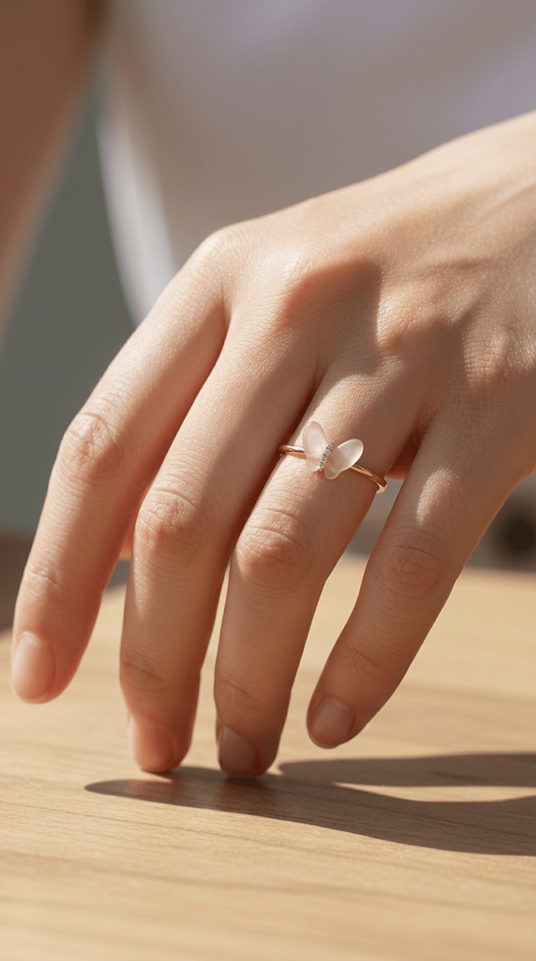 粉晶蝴蝶戒指