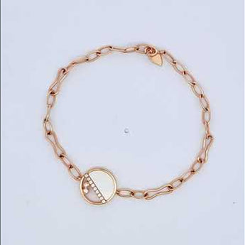 The main stone of the bracelet is made of semi-circular mother-of-pearl, while the other side is adorned with diamonds to create a unique style, exuding a sense of exquisite beauty that is hard to look away from.