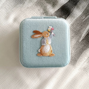 This design features a beautifully embroidered zipper jewelry box, embroidered with rabbit and cherry blossom patterns.There are a total of two layers available for placing rings, earrings, pendants, and other jewelry, allowing customers to mix and match different styles of earrings and necklaces. In addition, the surface of the box...The material is velvet and pink、Powder blue for you to choose, allowing your beloved jewelry to receive the best protection.
