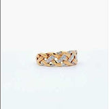 The ring is made of 18K rose gold paired with exquisite small white diamonds, crafted into a floral pattern using intricate jewelry techniques. At the same time, the chunky design makes the details of the ring more pronounced, exuding a captivating sense of delicacy.