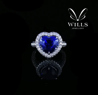 Classic Royal Blue "Heart of the Ocean" Heart-Shaped Blue Sapphire Multi-Faceted Surround Diamond Ring