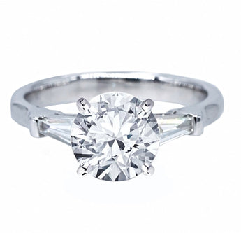 This classic diamond ring features a cathedral shoulder design, complemented by the step-cut diamonds on both sides. The elegant style allows you to shine brilliantly while maintaining an air of luxury.