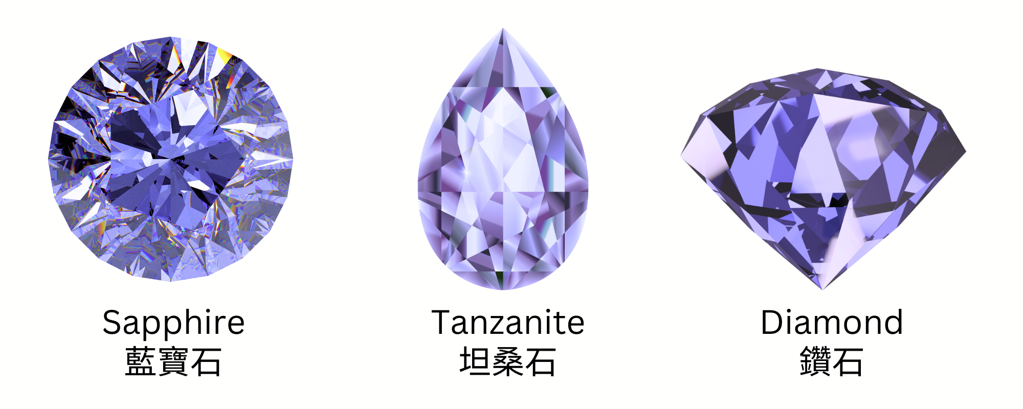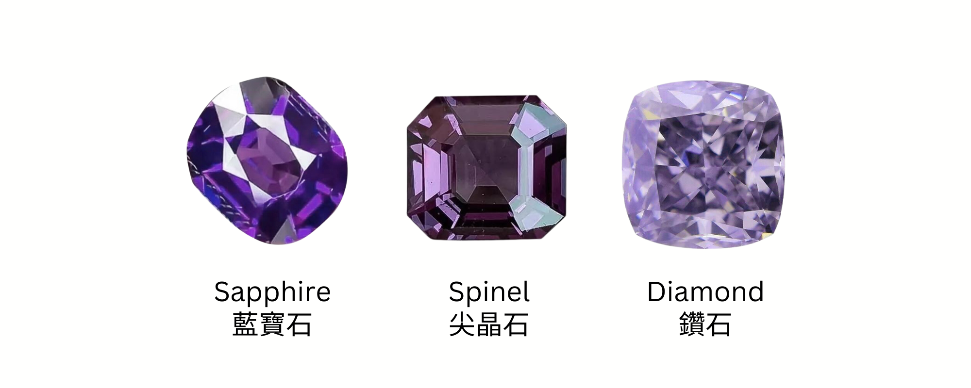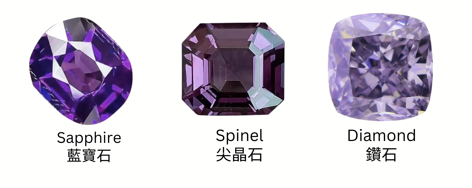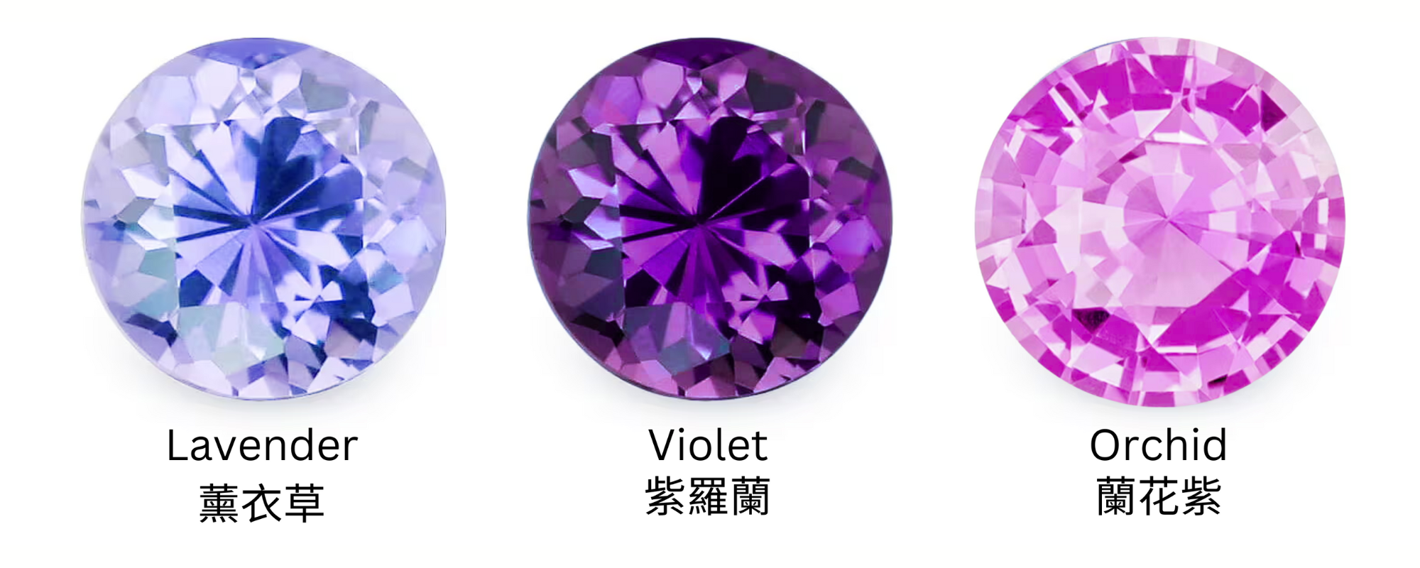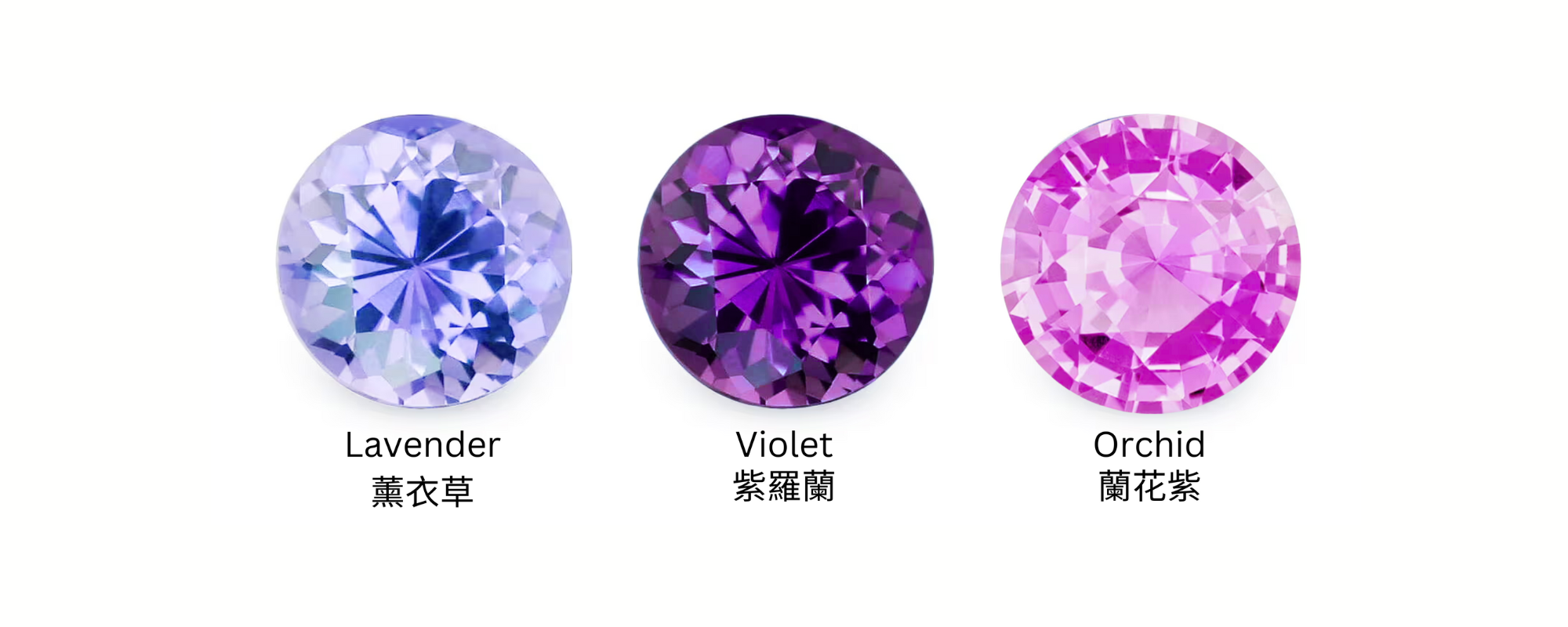 薰衣草色寶石通常帶有不同程度的藍調,擁有薰衣草色調的品種包括: