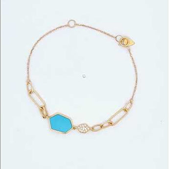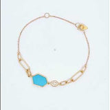 手鏈主石採用綠松石,配合以多顆鑽石密釘而成的多邊形,獨特且吸引人。