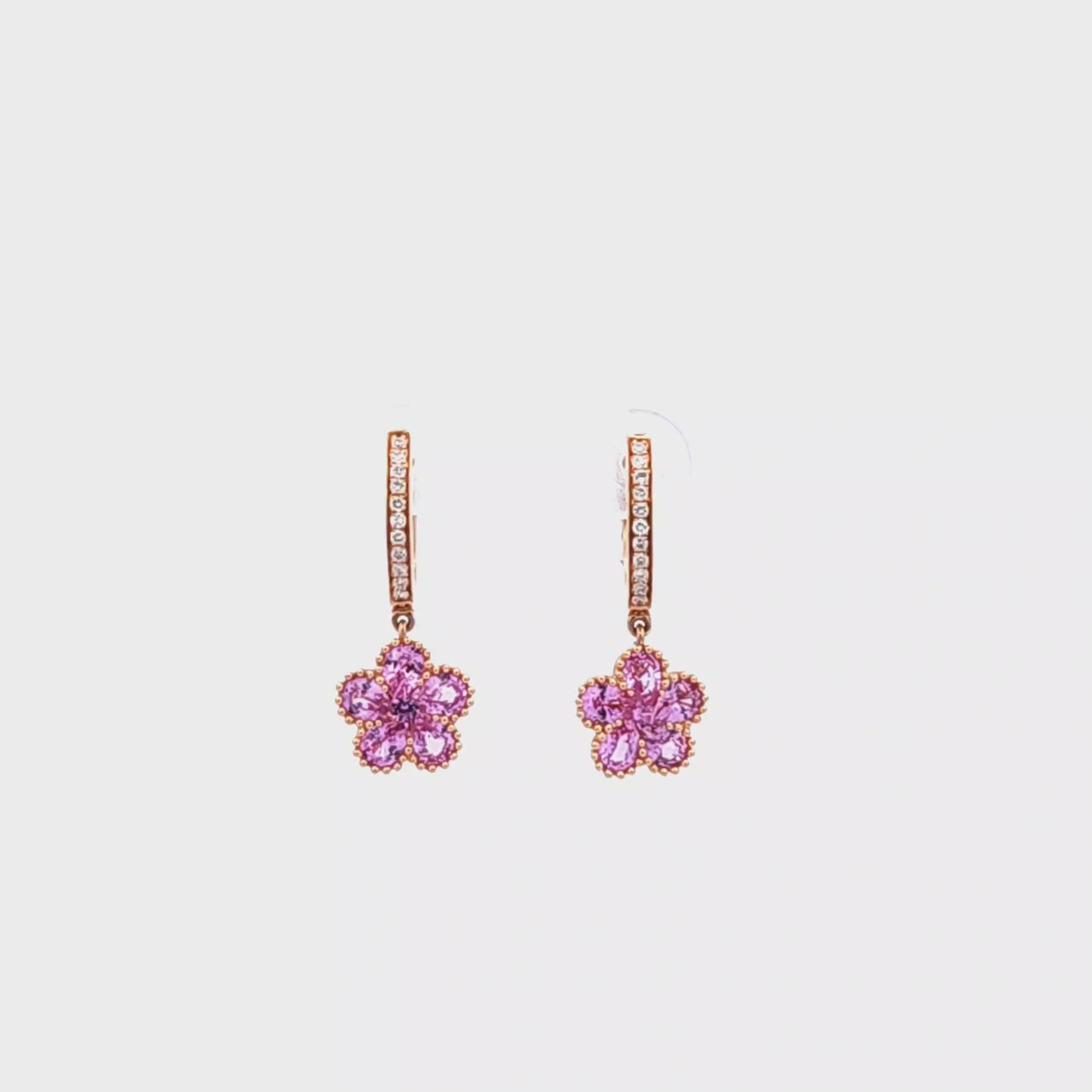 Garden・花形粉紅藍寶石珠邊鑽石耳扣