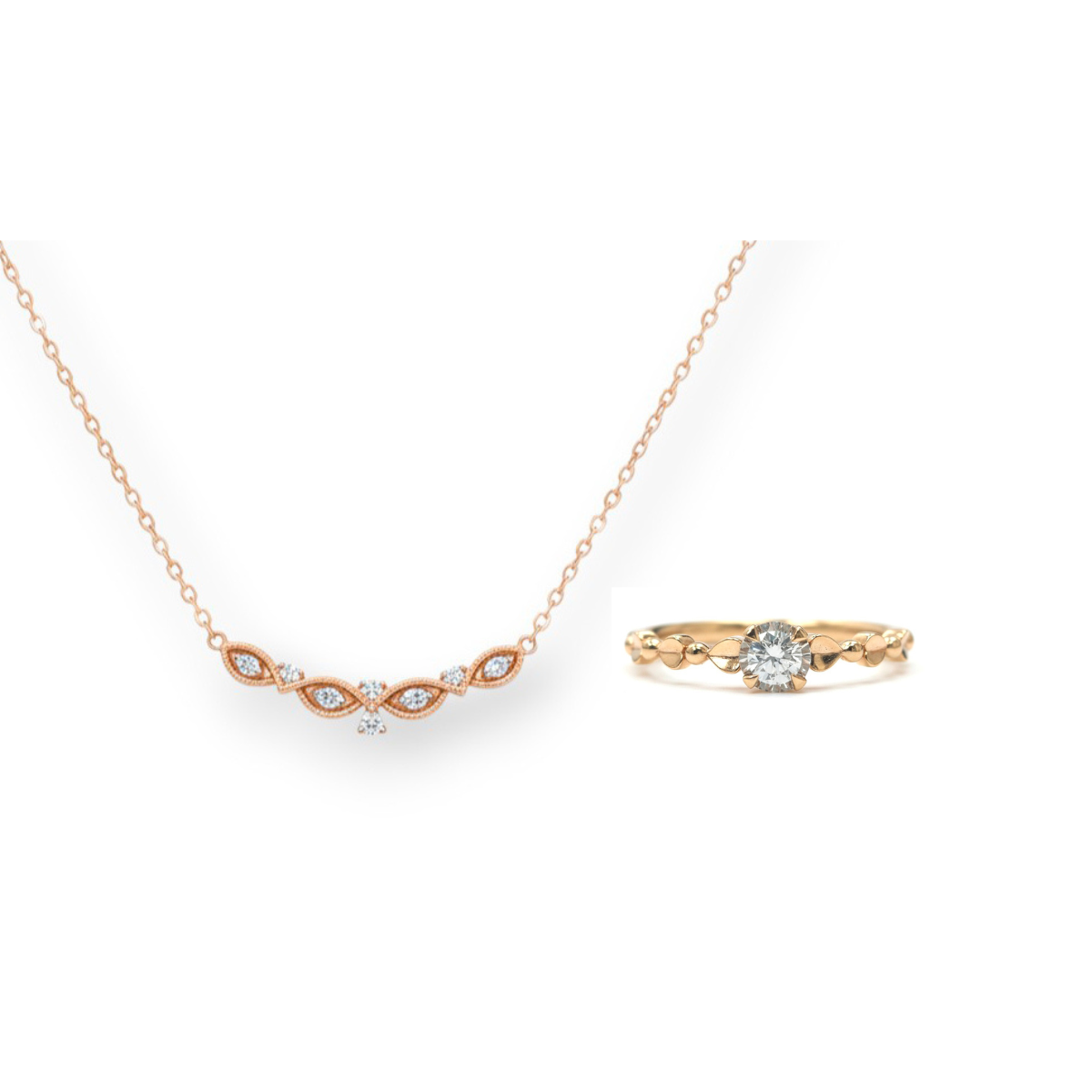 這款限定聖誕套裝以精緻的金色設計搭配閃耀鑽石,項鍊與戒指優雅獨特,散發高貴與節日的璀璨魅力。