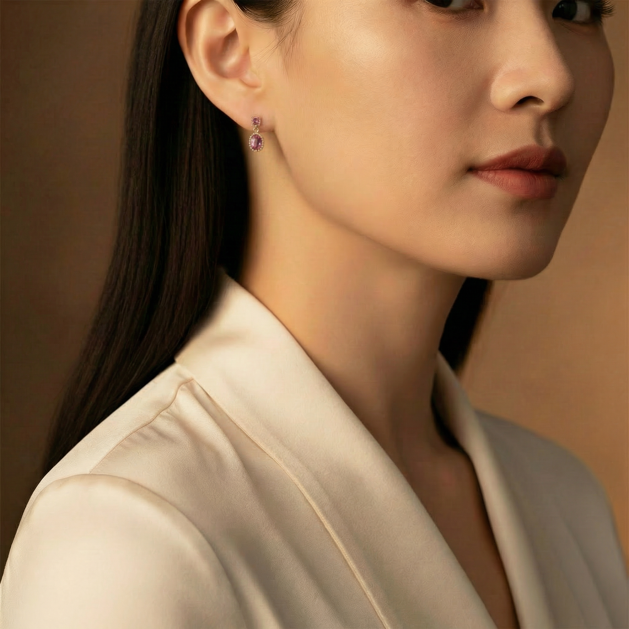 以精緻的玫瑰金為基底,搭配閃耀粉晶與璀璨小金珠,展現高貴典雅的氣質。簡約卻不失華麗的設計,讓您在任何場合都能成為焦點,完美詮釋優雅魅力。