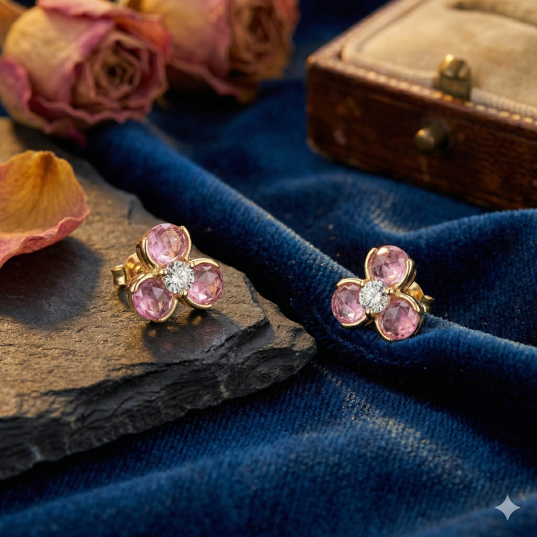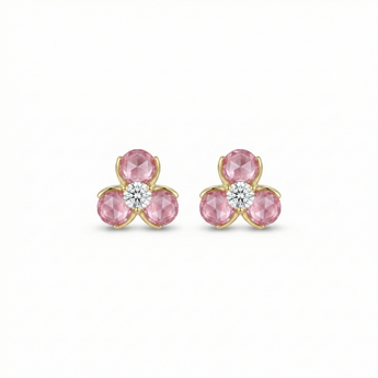 設計靈感來自三葉草,粉紅寶花瓣圍繞中心鑽石,象徵幸運與美好。簡約且甜美的造型,搭配玫瑰金細節,為日常穿搭增添一抹溫柔魅力。