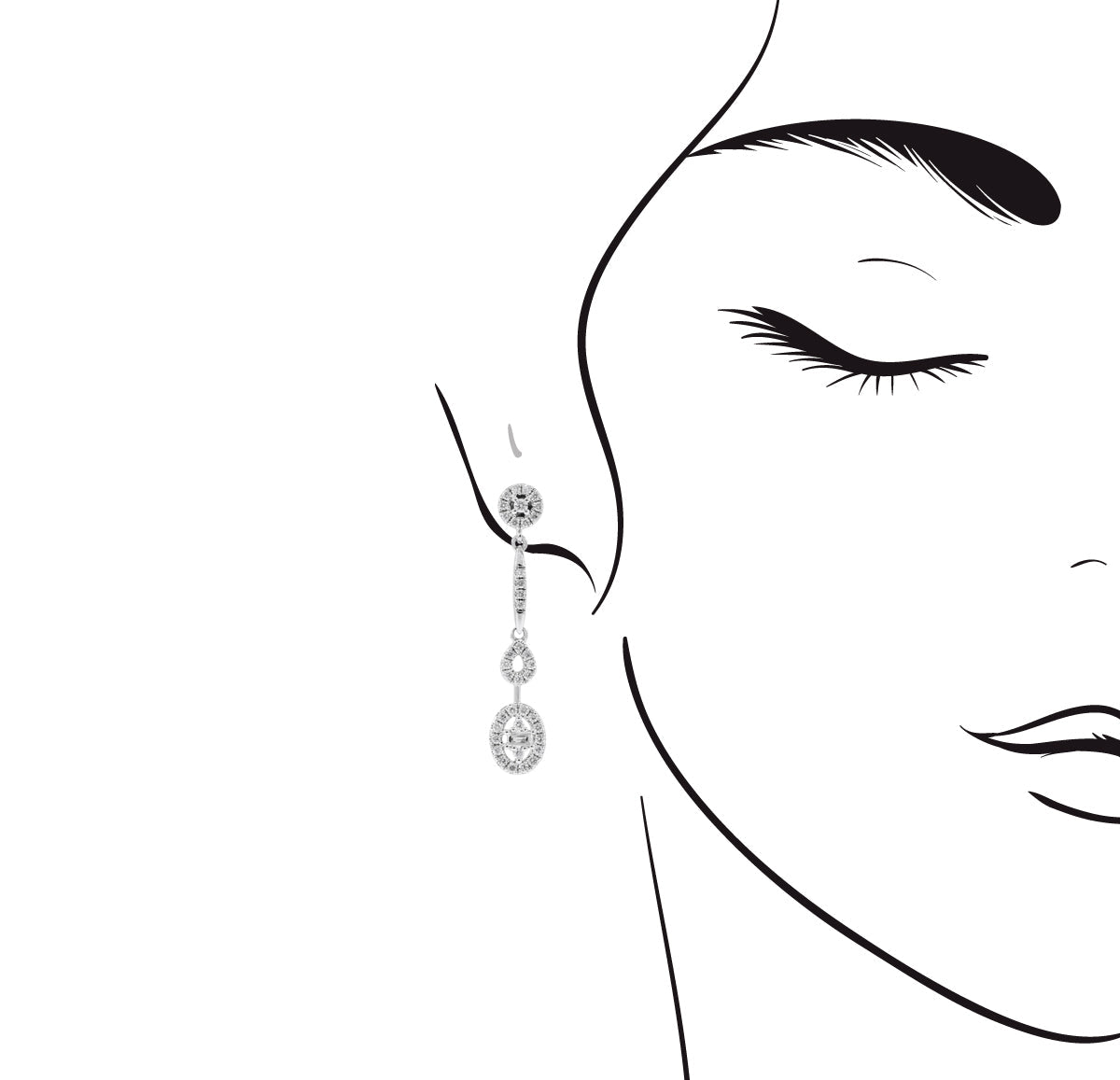 長方及圓形美鑽組成的耳環,垂吊在耳朵之下,如微風輕撫地在輕晃,在日常襯搭出清新風格。