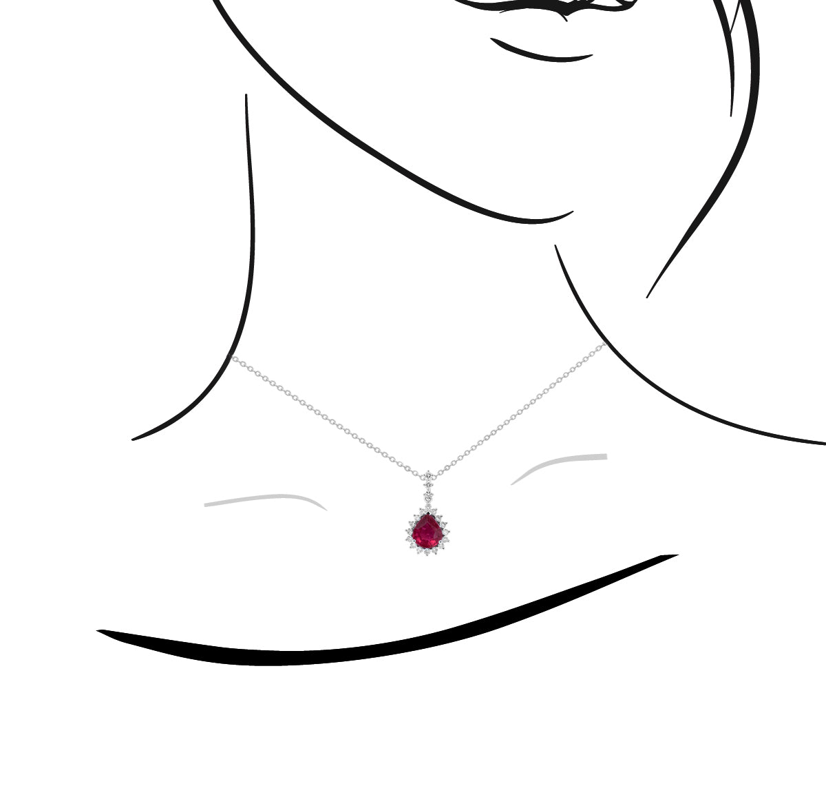 WILLS嚴選優質紅碧璽(Rubellite)作為吊墜的主石,梨形主石透亮的石質映出艷麗的光澤;配上戴安娜圍鑽款式,經典恆久的時尚,讓您在日常上班或宴會上都不失婉約和高貴的氣質。