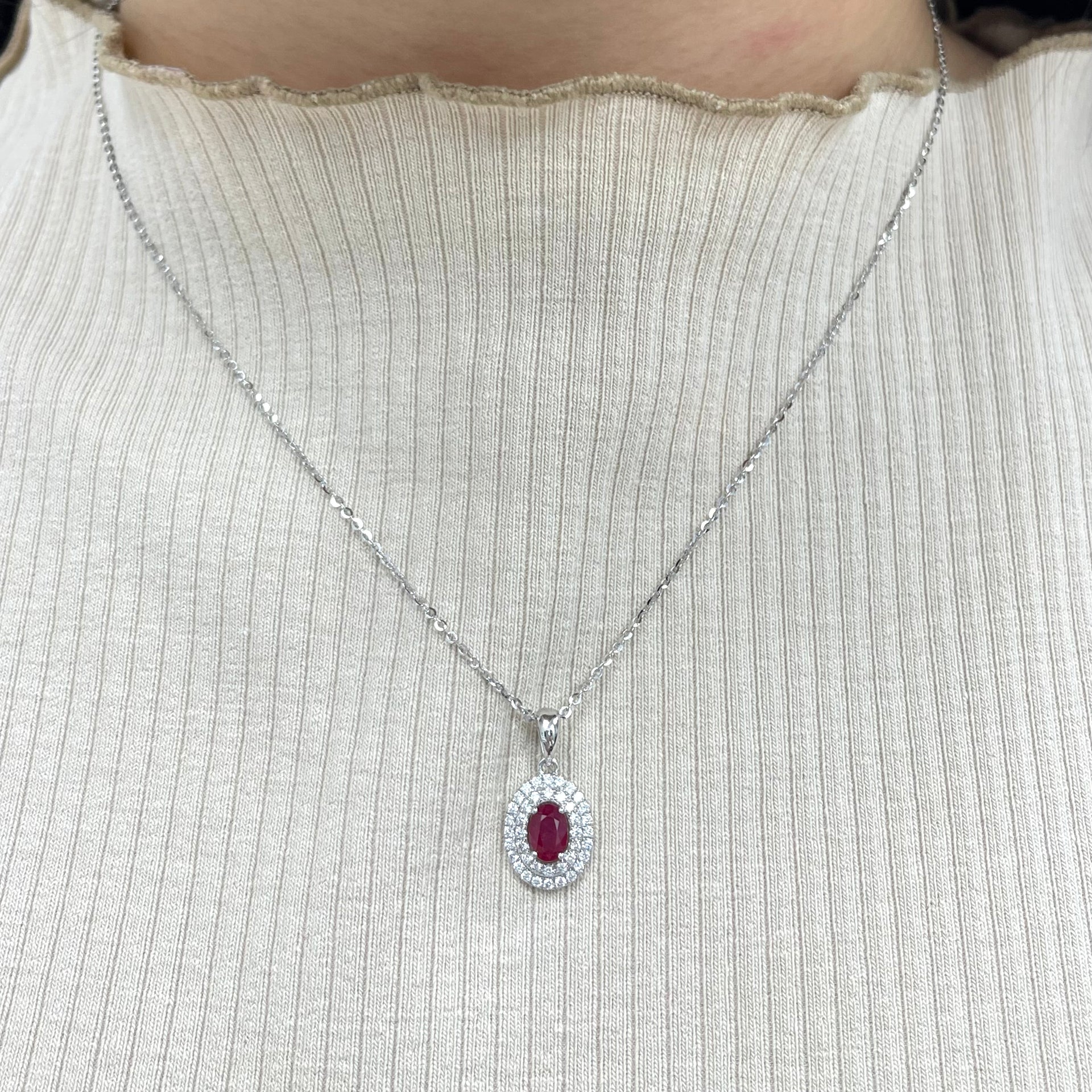 以優質天然紅寶石作為吊墜的主石,色澤濃郁深邃,配上閃亮的雙重圓鑽光環,更顯貴氣,讓你在任何時候和場合都光彩奪目。
