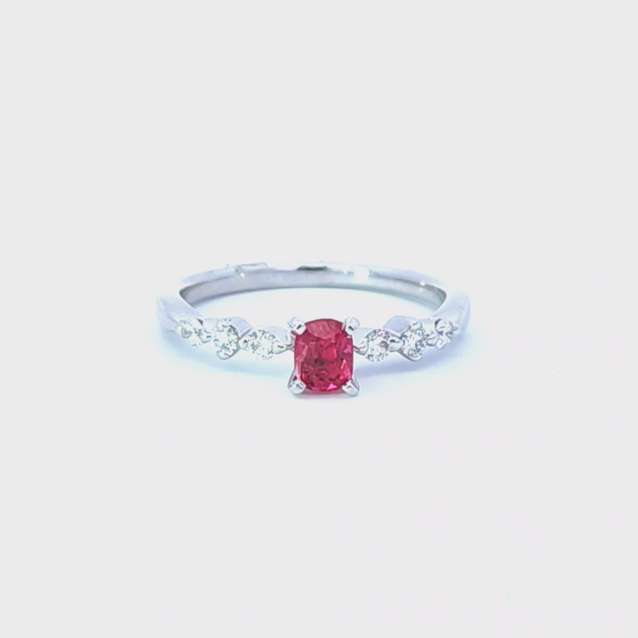 戒指採用了優質天然形紅寶石作主石,以閃鑽映襯,時尚新穎,展現您獨特的品味與個性讓您在日常上班或宴會上都不失婉約和高貴的氣質。