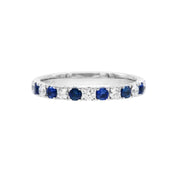 來自馬達加斯加的天然藍寶石色澤濃郁誘人。18K白金戒指上海軍藍色的藍寶石與別緻的圓形鑽石相間,色彩明麗的藍寶石在亮白的鑽石襯托下更加神秘、誘人,簡約的設計使整枚戒指低調得來高貴大方,特別適合作為日常的首飾配搭。