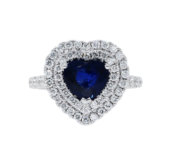 WILLS特意選購這顆產自斯里蘭卡的優質天然藍寶石作為戒指的主石。心形的藍寶石綻放著高貴無比的皇家藍色彩,飽和度極高而又晶瑩剔透。切割成心形的藍寶石散發著浪漫、甜美的光芒,加上外圍心形的雙重閃亮微密釘鑽石光環,又在這份甜蜜愛意上添加了一份尊貴的奢華感。這款貴氣逼人的藍寶石戒指特別適合作為晚裝的點綴,保證佩戴著它的你,不論在派對還是晚宴中,都能成為眾人的焦點所在。