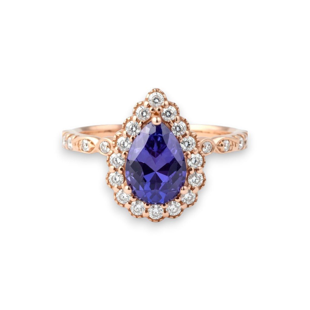 梨形圍鑽戒指 · 薰衣草無燒藍寶石